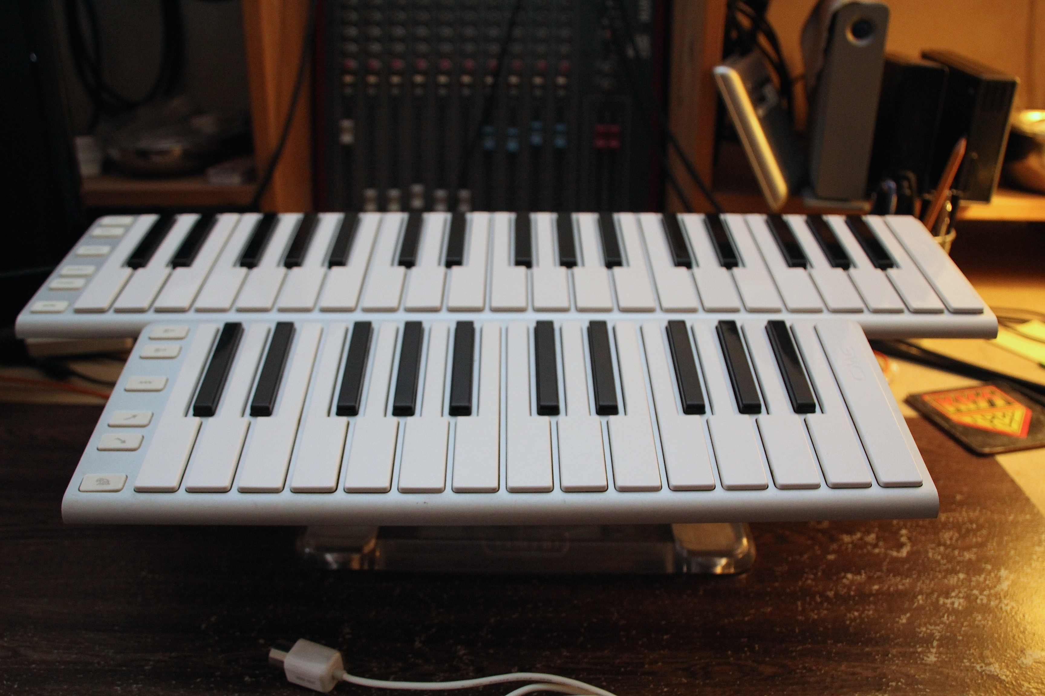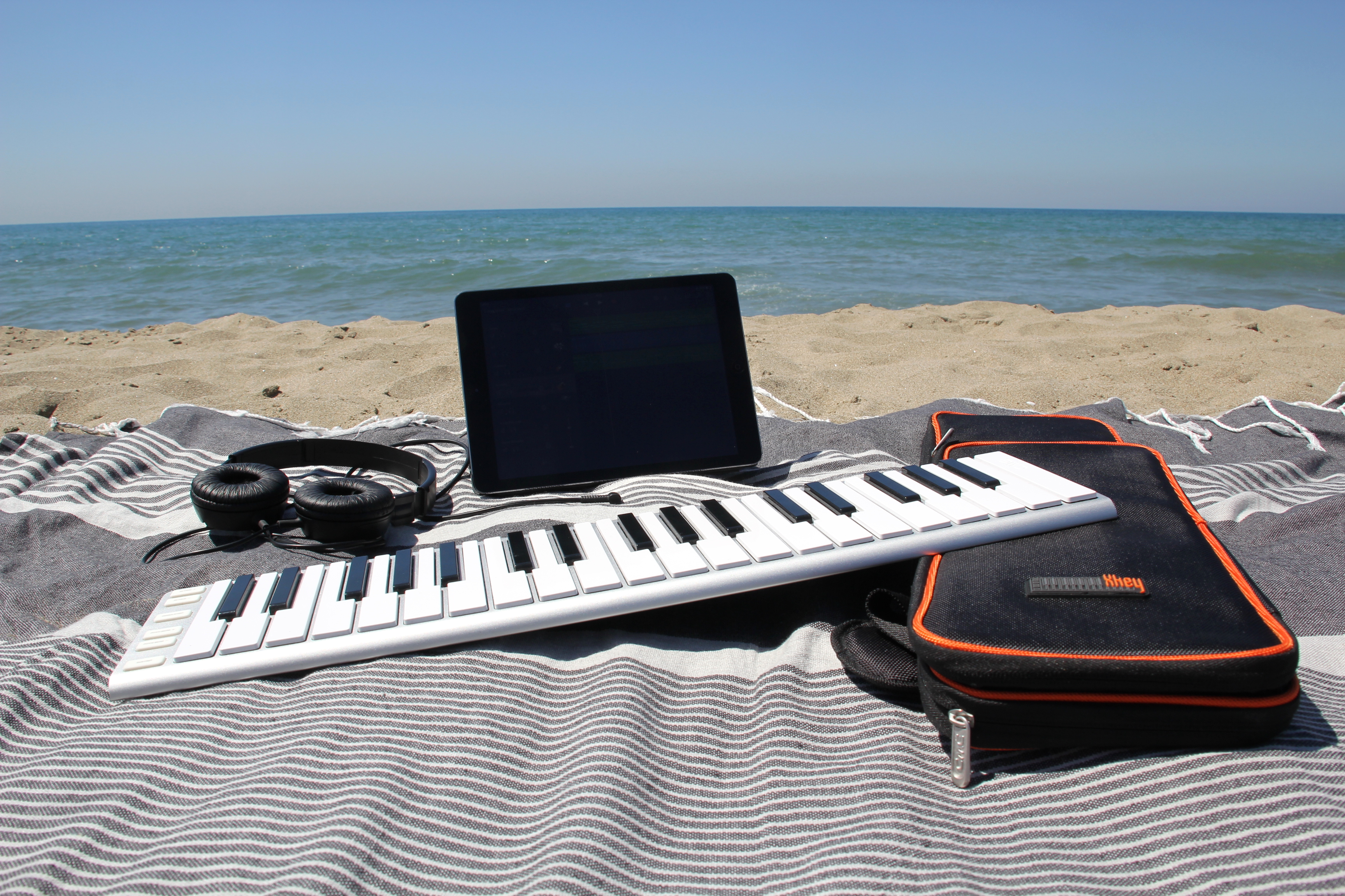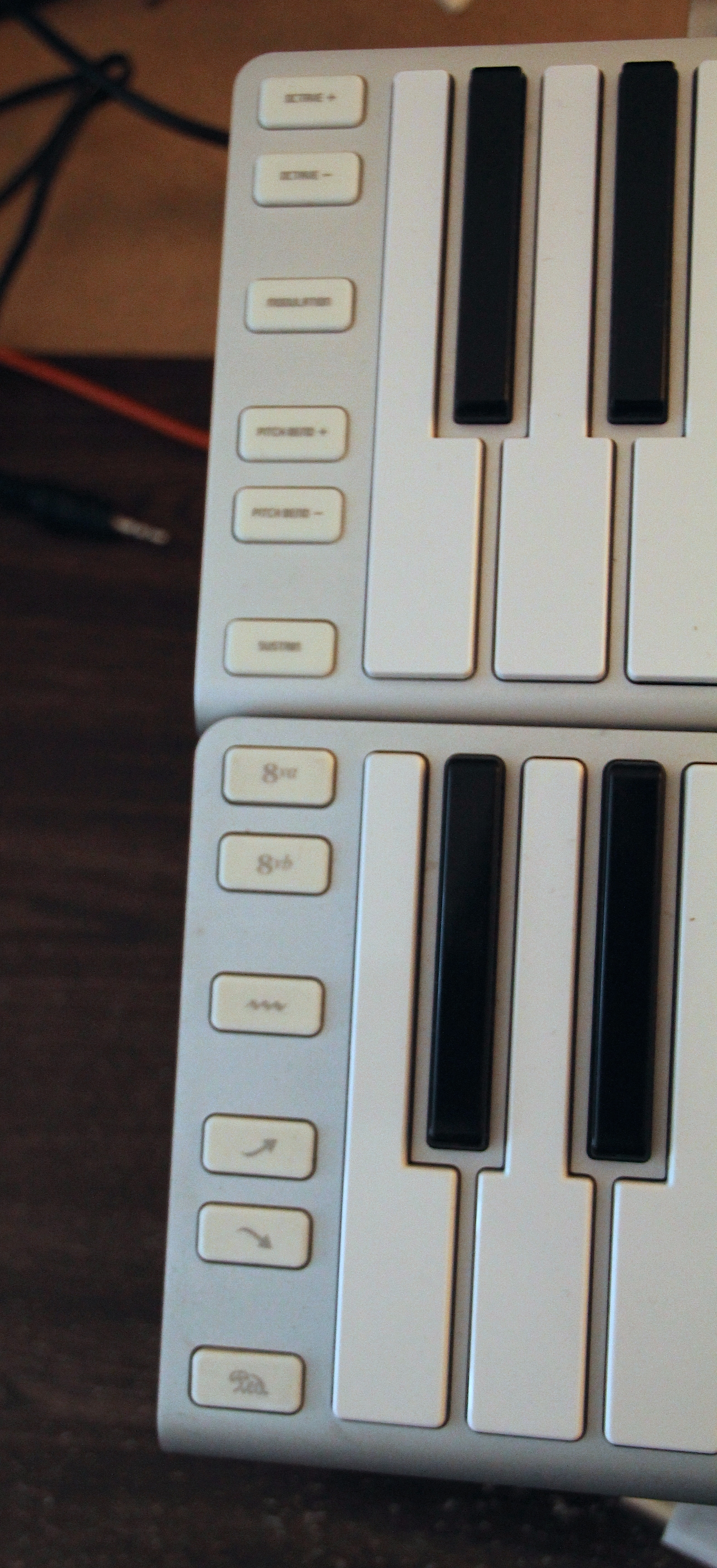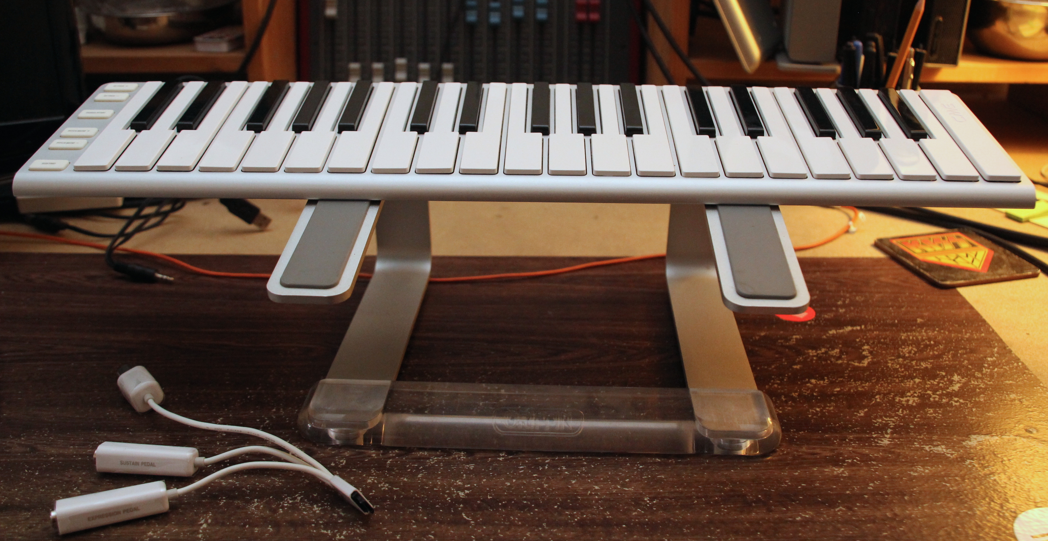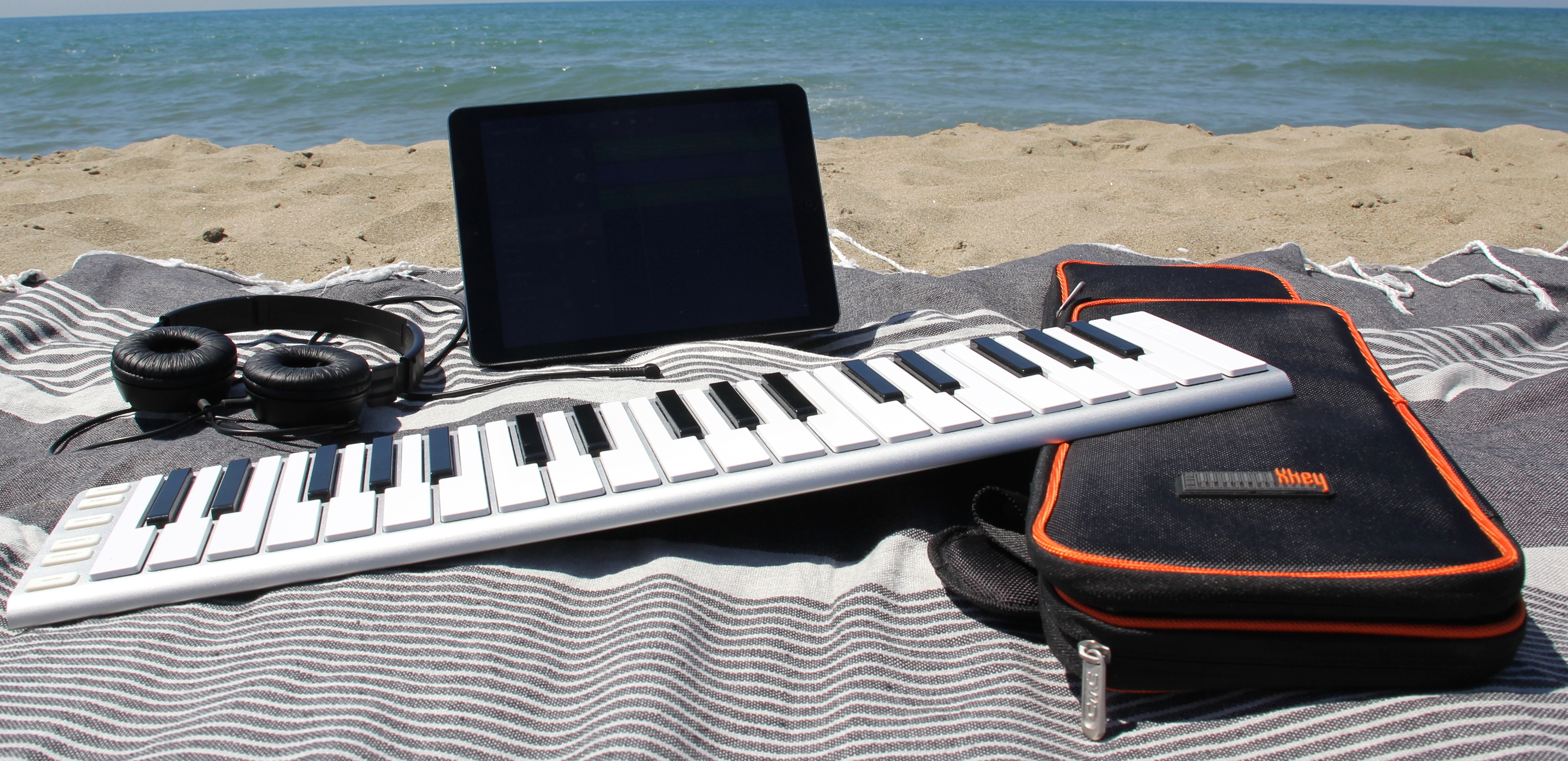 Fatta questa piccola digressione vacanziera, possiamo dire che la Xkey 37 ha lo stesso identico “tocco” dei tasti, aftertouch polifonico incluso, e lo stesso numero di pulsanti accessori per navigare fra le ottave, la modulazione, il pitch bend e il sustain. La vera differenza con la Xkey 25 sta nelle scritte sui pulsanti (qui in alfabeto latino e non per simboli musicali), e in un accessorio molto utile che si inserisce sul lato opposto a quello della connessione usb, ovvero un cavo aggiuntivo chiamato Xcable (un “breakout cable”) che offre un’uscita MIDI standard e due connessioni jack da 1/4 per collegare i pedali sustain ed expression.