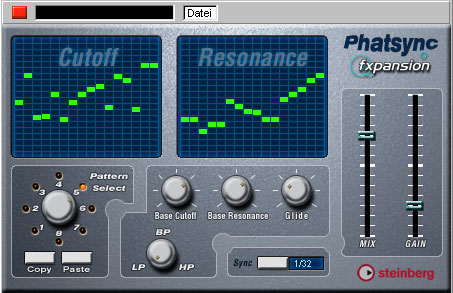 foto Il PhatSync può creare 2 pattern da 16 step contemporaneamente da applicare ai parametri di cutoff e resonance; ambedue sono sincronuzzabili al tempo della song. Ciascuno dei 16 steps può avere il cutoff/resonance impostato separatamentehe sequencers tempo Caratteristiche