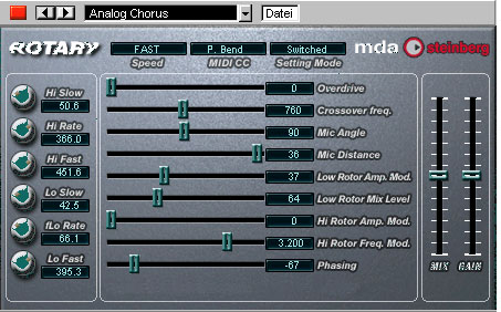 Ricrea un rotary speaker, particolarmente adatto a suoni di organo. Simula: